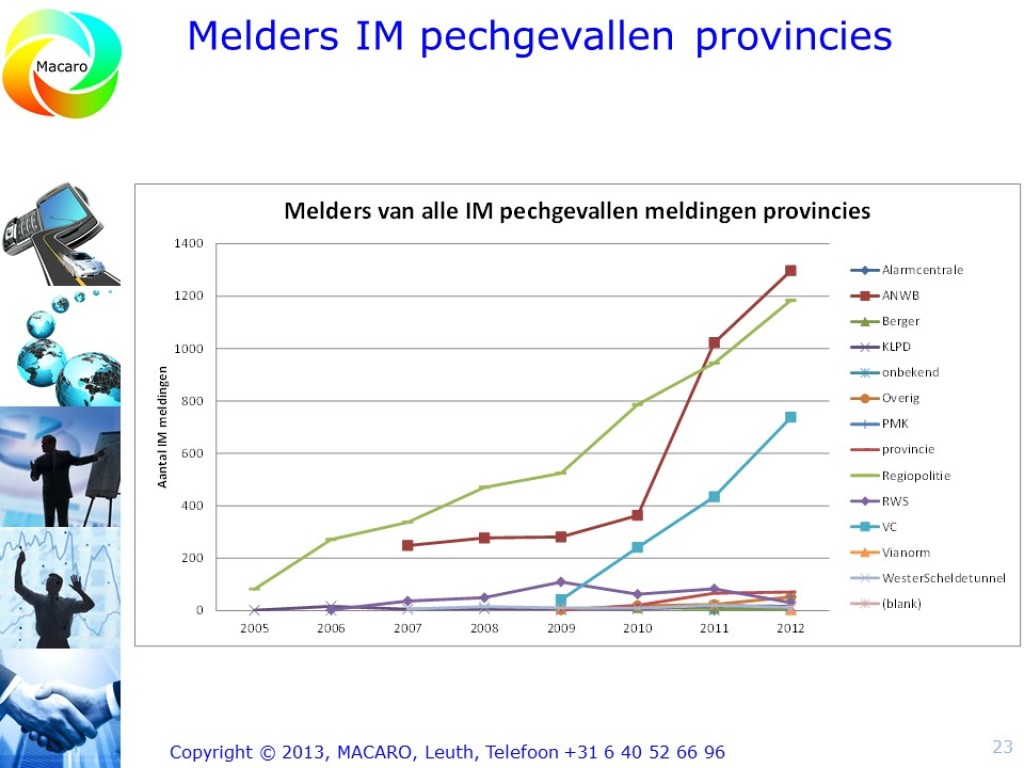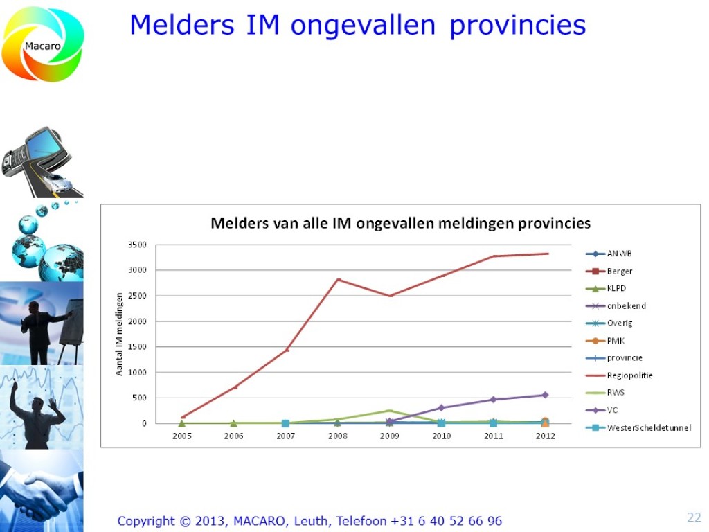 Macaro leverde de IM-rapportage voor de provincie Gelderland en de provincie Zuid-Holland voor de eerste helft van 2013 op. Daarnaast verzorgde ik een IM-jaarrapportage over heel 2013. De rapportages bevatten kenmerkende gegevens, onder meer: