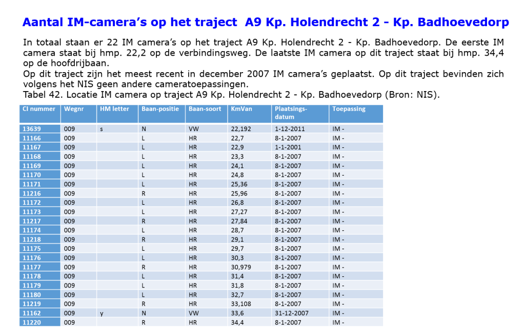 Het plaatsen van IM-camera’s is in het verleden meestal gebeurd op basis van een projectmatige aanpak en afweging. Hierbij is niet uitgegaan van landelijke, op de toepassing toegespitste afwegings- en plaatsingscriteria, maar is het vaak een lokale afweging geweest.