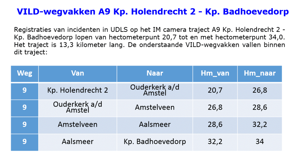 - De locatie van IM-meldingen (inclusief wegletter-, wegnummer-, wegnaam-, rijbaan- en hectometeraanduiding)
