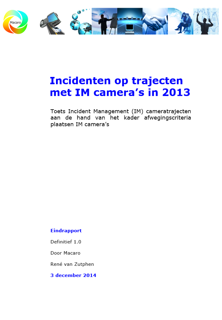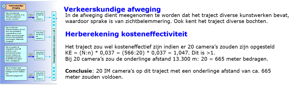 René van Zutphen heeft hiervoor in opdracht van Rijkswaterstaat Water, Verkeer en Leefomgeving (WVL) in 2013 het document “Afwegingscriteria plaatsen IM-camera’s” opgesteld. Het kader daarvan is opgesteld op basis van bestaande kennis en vervolgens door VWM getoetst aan de hand van een tweetal praktijkcases.