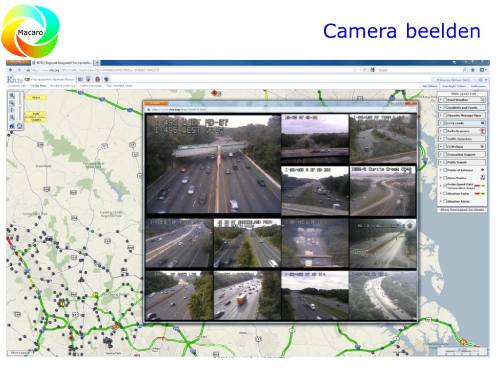 Voor verschillende toepassingen worden er door Rijkswaterstaat camera’s gebruikt langs het hoofdwegennet en bij objecten. In totaal zijn er inmiddels rond de 3000 camera’s operationeel. In het bijzonder voor het plaatsen van camera’s op spitsstroken waren/zijn duidelijke criteria beschikbaar.