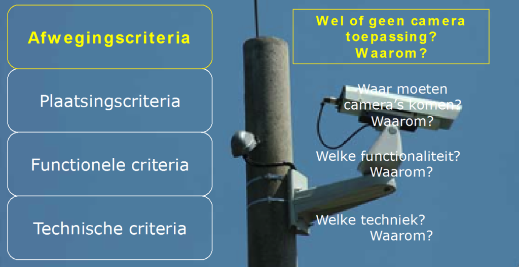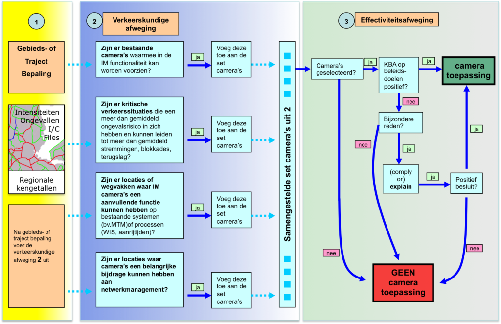 In het kaderdocument zijn de afwegingscriteria om te komen tot IM-cameratoepassingen in drie stappen beschreven: