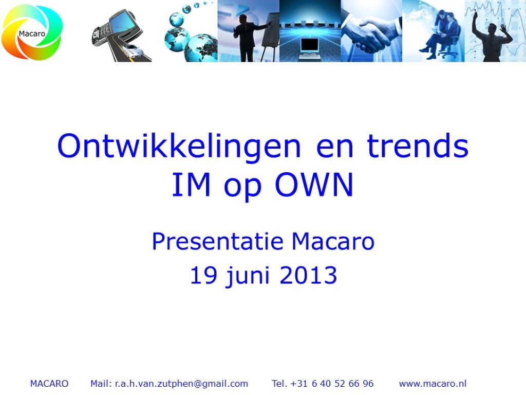 René van Zutphen voert vanaf juni 2015 het secretariaat uit voor het IM OWN overleg. Naast de secretariële werkzaamheden (plannen en uitvoeren overleggen) zal ik me ook inhoudelijk bezig gaan houden met het verder professionaliseren van het IM OWN overleg.