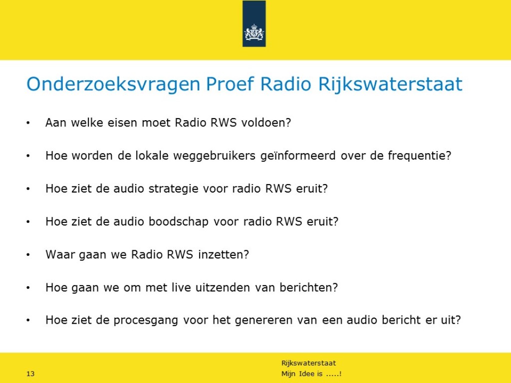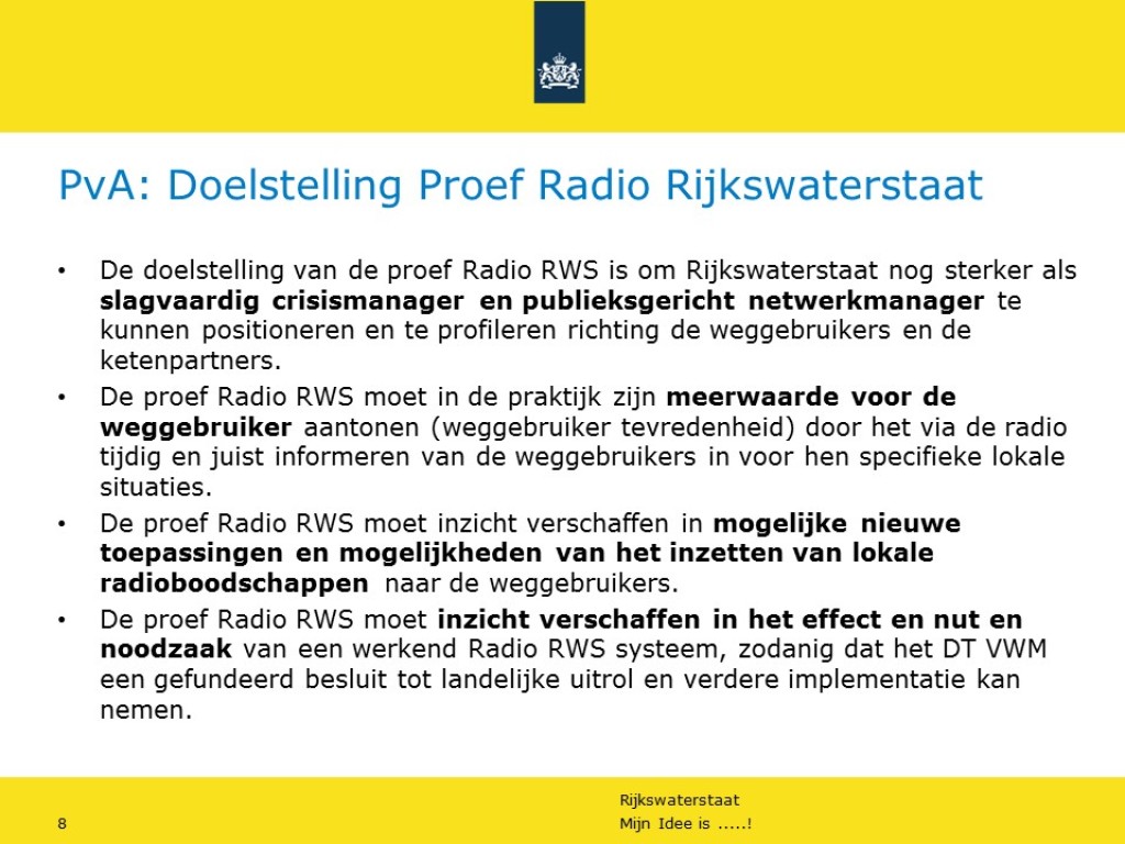 Plan van aanpak voor Proef Radio Rijkswaterstaat